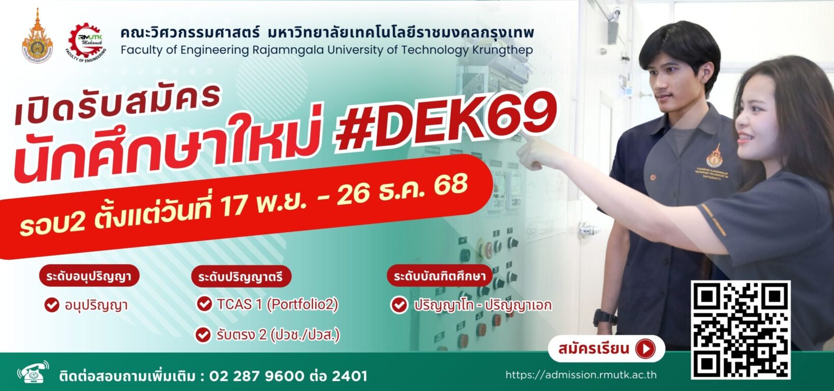 คณะวิศวกรรมศาสตร์ เปิดรับสมัครนักศึกษาใหม่ ปีการศึกษา 2569 รอบที่ 1