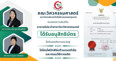 อาจารย์ประจำสาขาวิชาวิศวกรรมเคมี ได้รับอนุสิทธิบัตรการประดิษฐ์