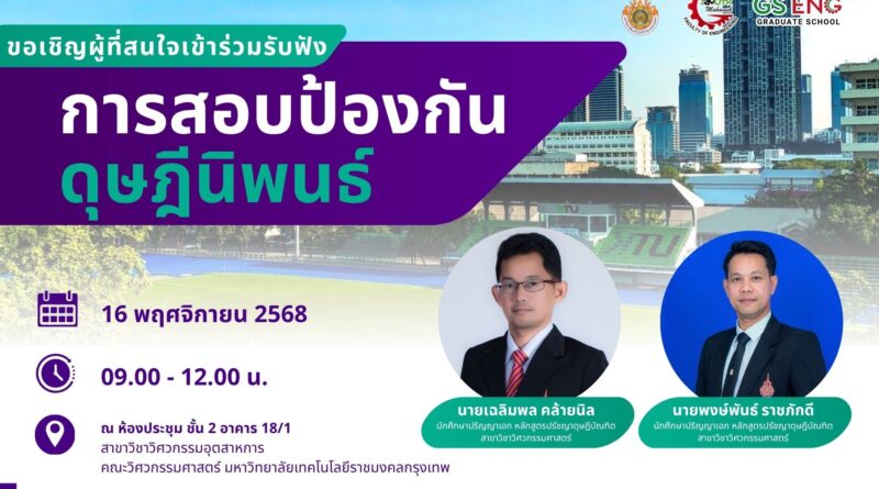 ข่าวประชาสัมพันธ์ ขอเชิญผู้ที่สนใจเข้าร่วมรับฟัง การสอบป้องกันดุษฎีนิพนธ์ นักศึกษาปริญญาเอก หลักสูตรปรัชญาดุษฎีบัณฑิต สาขาวิชาวิศวกรรมศาสตร์ 12/11/2025 admin Read More